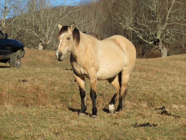 Blossom is a dunalino mare by Ghost of Hollywood and out of our sweet Foxy. She is a wonderful addition to the herd, carrying on these lines of stout, sane horses. Exposed to Shiloh for 2026.